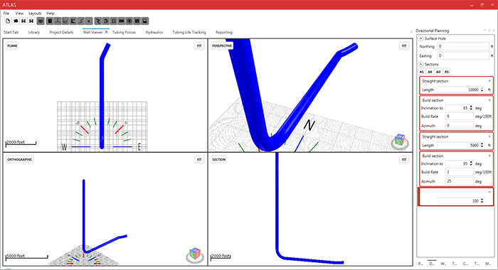 Well Path Planning - Using wellbore trajectory and completion details, a suitable wellpath can be modelled. This determines the motor bend needed in order to generate the required build, as well as determining ability to drill curved and horizontal sections in a single run.
