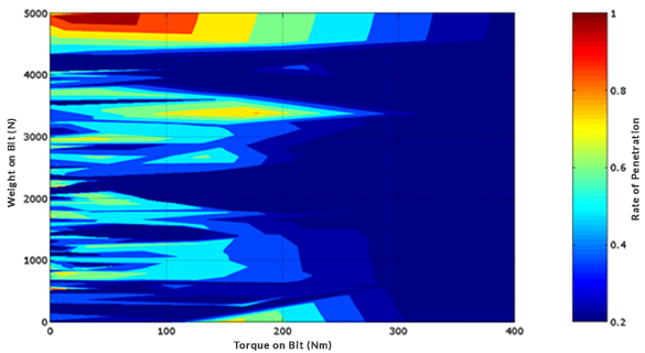 Rate of Penetration with varying Weight-On-Bit and Torque-On-Bit